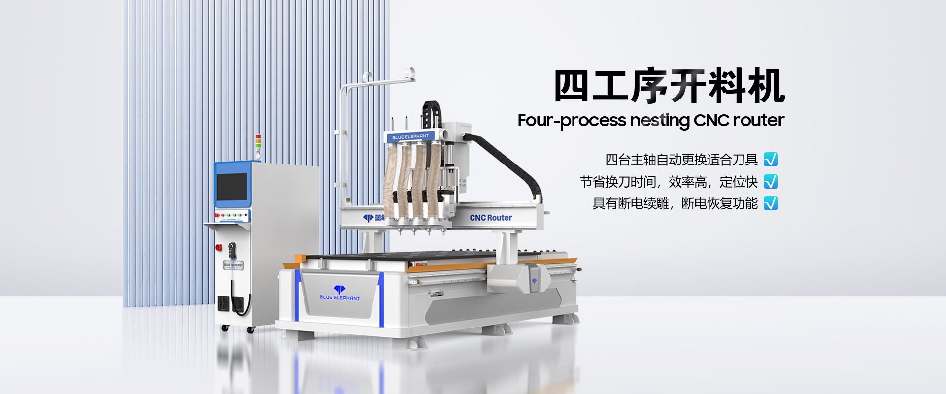 藍象數(shù)控(BLUE ELEPHANT)是一家自動化木工設備及數(shù)控設備研發(fā)、制造、銷售、售后服務于一體的高新技術企業(yè),為客戶量身打造個性化需求的自動化設備解決方案。主營全自動封邊機、板式家具生產線、數(shù)控開料機、木工開料機、數(shù)控排鉆設備等產品。