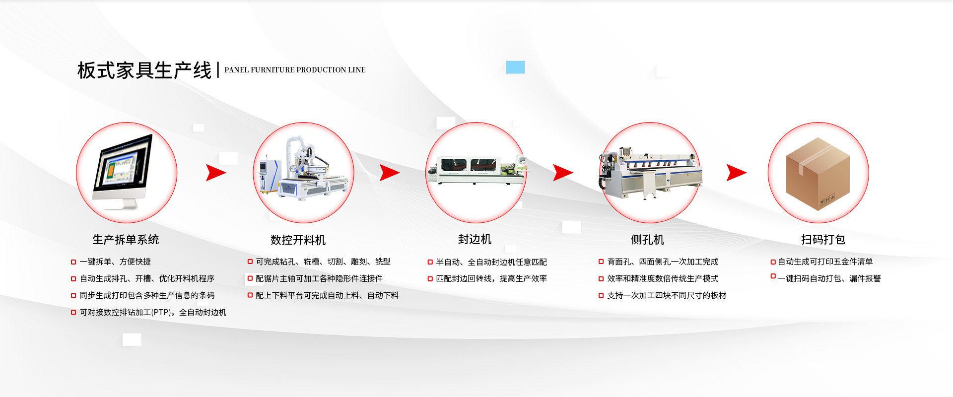 全自動開料機作為數(shù)控智能化加工設備,在加工效率提升、加工質量提高等方面做出了很大的改變,憑借這些優(yōu)勢,在市場上深受廣大客戶的喜愛和歡迎... 閱讀詳情 >>板式家具廠要打造工業(yè)4.0的生產線,就要將開料、封邊、鉆孔、分揀、包裝等流程實現(xiàn)自動化、流水化。 >>